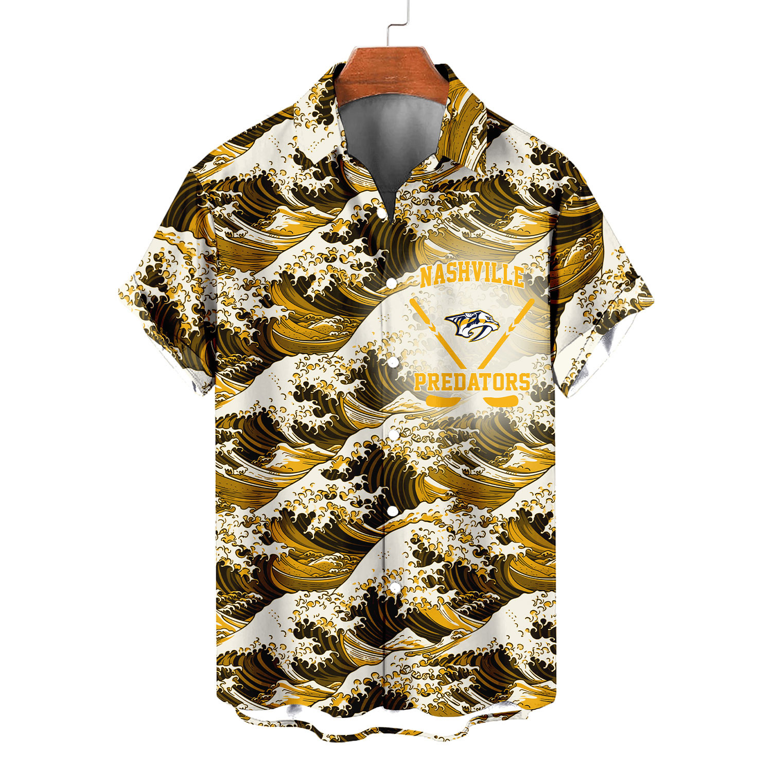 Nashville Predators | Moisture-wicking Ukiyoe Wave Logo Hawaiian Shirt